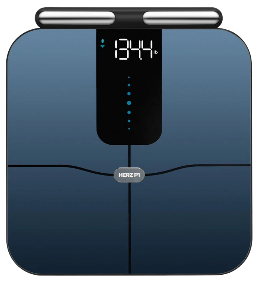 “P1” refers to Personal Health Level 1, indicating full-body, personal health analysis. It reflects Herz’s first advanced consumer-grade system designed to measure complete body composition, not just weight, using multi-electrode technology.